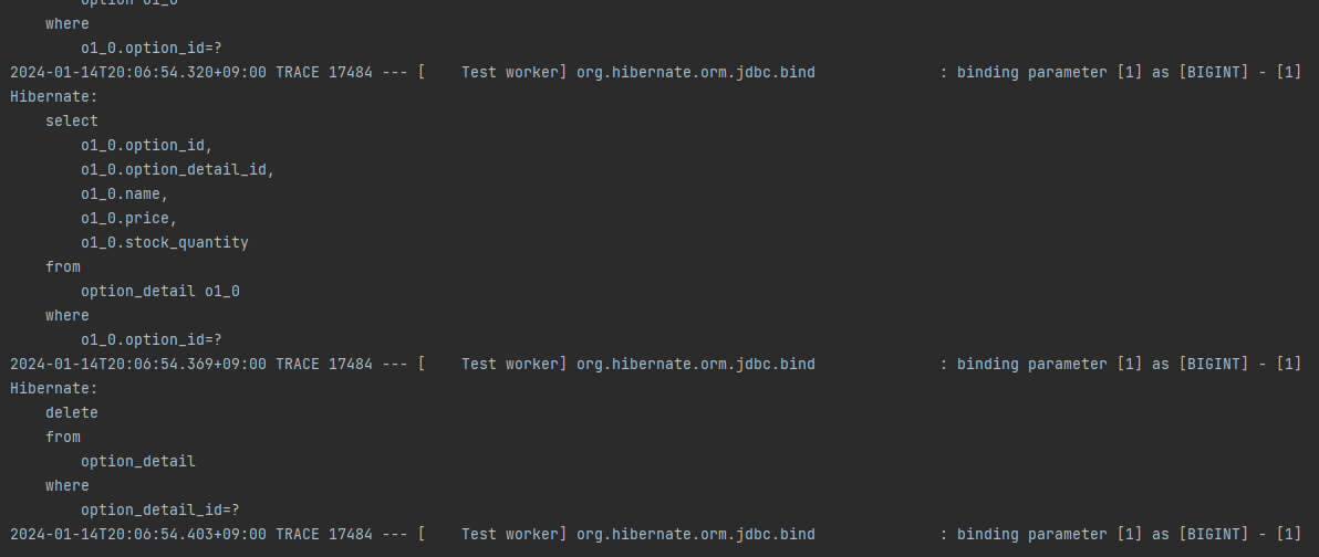option_detail 테이블에서 삭제 쿼리가 실행되는 것을 확인할 수 있다.
